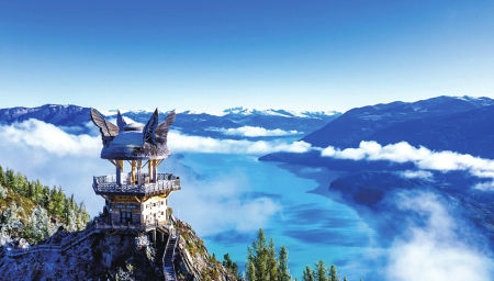 喀納斯湖中心的變色湖是一處特別的景觀,它是天地間的一面鏡子,隨著周圍四季風景變換而呈現不同顏色。五月還是青色,六月則轉藍綠,七月乳白色加入,八月墨綠,九月、十月如翡翠一樣色彩斑斕,十一月冰雪封湖一片雪白,至來年四五月又是一個輪回。但八月初,喀納斯湖景區(qū)海拔1400米以上便可能降雪,雪期會長至下一年六月,因此,游客要想賞喀納斯的美,六月和七月是最佳旅游時間。有許多游客是穿羽絨服而來,拍照時脫下外套,潔白的裙子映在湖光山色間,說一句仙女之姿,絲毫不為過。