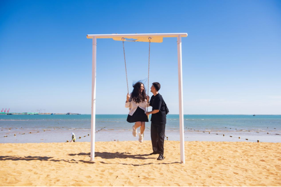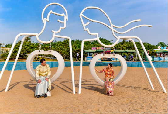 沙灘上的網(wǎng)紅打卡點成為拍攝婚紗照的熱門地。新華網(wǎng)發(fā)(葉連俊 攝)