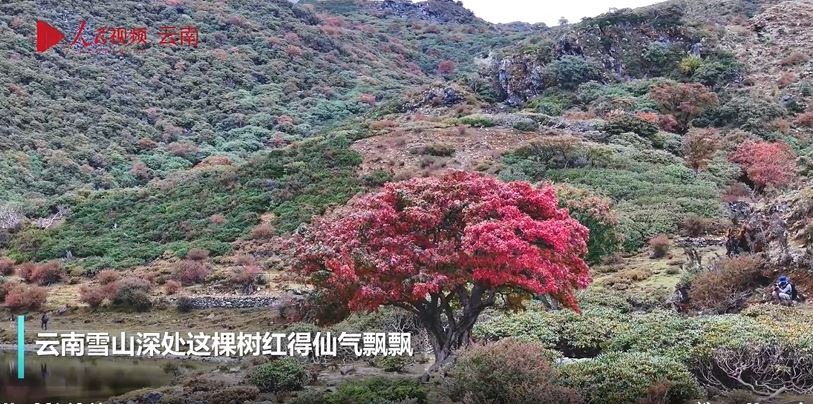 據(jù)了解,這棵紅冠樹被當(dāng)?shù)厝朔Q為野花楸樹,每年深秋時(shí)節(jié),這棵樹的樹葉都會(huì)變?yōu)榧t色,吸引了眾多游客前來打卡拍照。