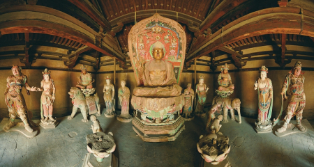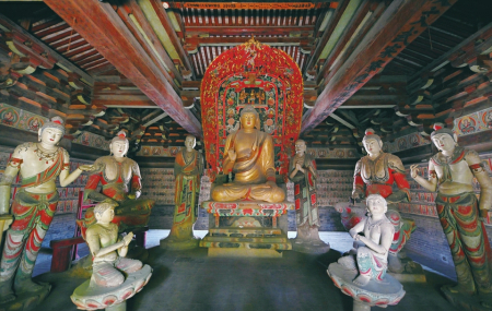 五臺(tái)佛光寺東大殿唐代彩塑刻畫(huà)入微,體態(tài)豐滿,展現(xiàn)了唐代彩塑的高超技藝。