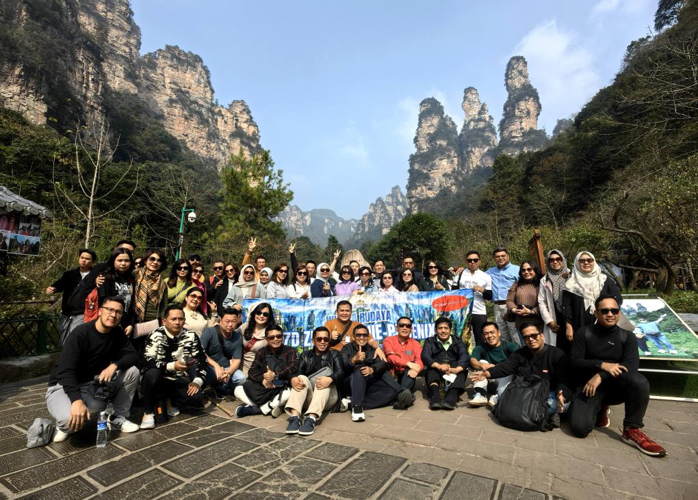 11月5日,來自印度尼西亞的團(tuán)隊(duì)游客在張家界國家森林公園留影。(吳勇兵 攝)