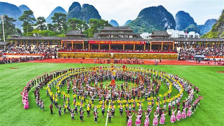 11月23日,廣西柳州市融水苗族自治縣民族體育公園,群眾身著盛裝參加民族文化展演活動(dòng),吸引了八方游客。黎寒池?cái)z(中經(jīng)視覺)
