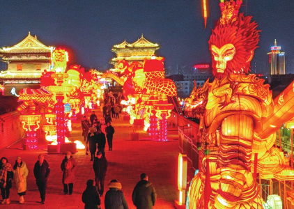 夜放花千樹,吹落星如雨,是大同現(xiàn)代夜景的詩意寫照。從2013年春節(jié)起,至今成功舉辦九屆的大同古都燈會,已成為大同的傳統(tǒng)民俗活動之一。今年的大同古都燈會從形式到內(nèi)涵都有了全面的創(chuàng)新升級,在文化感、藝術(shù)性和故事性上彰顯出了新春節(jié)慶、地域民俗以及城市時尚的代表元素。燈會通過新穎的手法將“形、色、聲、光、動”融為一體,圍繞生肖文化、祈福文化、特色非遺、傳統(tǒng)美食、大同知名文旅內(nèi)容等,設立了“古城春韻區(qū)”“悟空嘉年華”“炫彩賀春區(qū)”“魅力大同區(qū)”“年韻薈萃區(qū)”“年趣童真區(qū)”“喜慶盛世區(qū)”“王者榮耀區(qū)”“吉祥福佑區(qū)”九大主題燈區(qū),精心打造集民俗燈彩、演出、互動、體驗、市集為一體的新春燈會,開啟了一場千年古韻與現(xiàn)代風華的交融之旅,將“大同年·大不同”的這份喜慶歡騰、溫馨浪漫,傾情灑向流連在斑斕燈海的游人們。