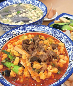 西安也被稱為“碳水之都”,在羊肉泡饃、肉夾饃、褲帶面、棍棍面、甑糕、柿餅糕、蒸餃、酸湯水餃、涼皮、熱米皮等長長的美食清單中,有三樣是到了西安一定要嘗一嘗的。