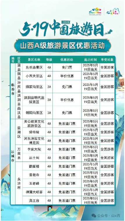 5·19中國旅游日 | 山西A級旅游景區(qū)面向全國游客優(yōu)惠