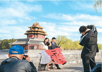 “今年訂單量明顯上升,其中不少咨詢檔期的客人是外地的。”在北京從事領(lǐng)證跟拍、婚禮紀實拍攝的獨立攝影師劉璐璐告訴記者,西城區(qū)等婚姻登記處由于毗鄰故宮、景山公園等文旅地標,相對更加“出片”,受到新人們的青睞,“有一對廣東來的情侶領(lǐng)完證后開玩笑說,他們是來北京旅游的,順便結(jié)了個婚?!眲㈣磋凑f。