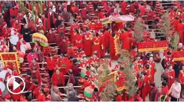 千擔紅盤列成長陣,鑼鼓聲震徹鄉(xiāng)野,這就是莆田市涵江區(qū)新坡村最具代表性的元宵民俗活動之一——千人擔盤鬧元宵?;顒又校灏瓷ず湍挲g輪值“福首”,由其牽頭組織,將親朋好友家的擔盤集中巡游祈福。熱鬧的儀式不僅吸引八方賓客慕名而來,也讓不少僑胞跨越山海返鄉(xiāng)團聚。正月十一,人民日報記者走進新坡村,探訪這場承載鄉(xiāng)情與祝福的元宵盛會。