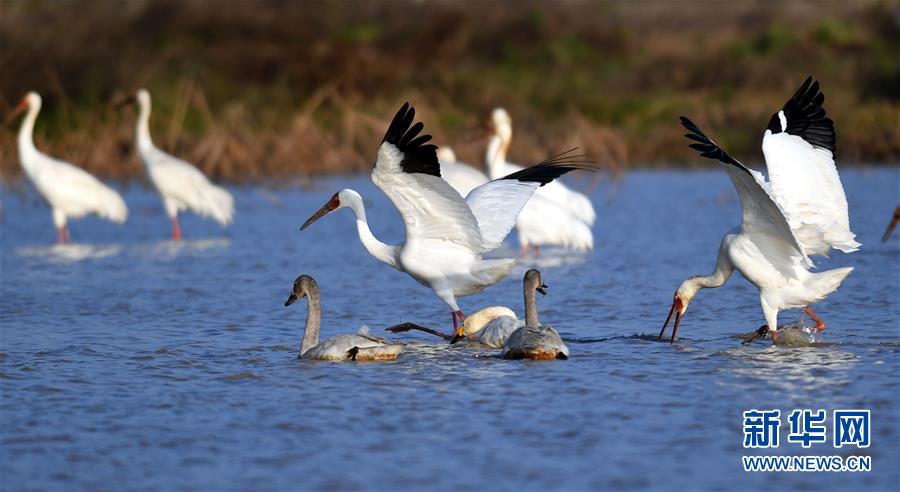 受新一輪北方冷空氣南下影響,江西鄱陽湖越冬候鳥數(shù)量激增,一年中最佳的觀鳥時節(jié)到來。江西鄱陽湖國家級自然保護(hù)區(qū)管理局近日監(jiān)測顯示,飛抵保護(hù)區(qū)的候鳥總數(shù)達(dá)到16萬只,主要包括大雁、小天鵝、白鶴、東方白鸛等。