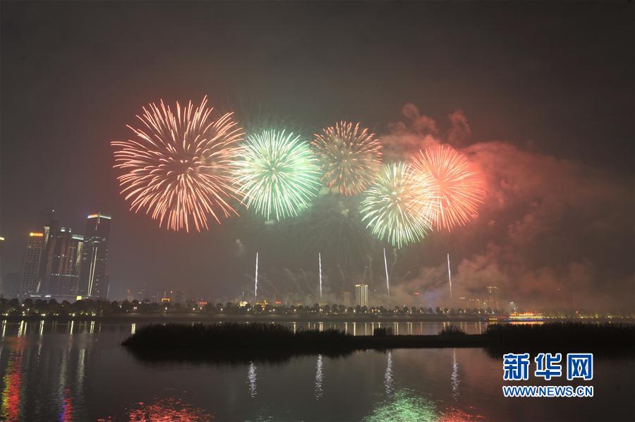 2017年1月1日夜晚,長沙橘子洲附近湘江上空綻放絢麗焰火。當(dāng)晚,湖南長沙橘子洲舉行焰火晚會慶祝新年到來。整場焰火晚會主題為“多彩星城、魅力長沙”,焰火燃放時間約20分鐘。 新華社記者 龍弘濤攝