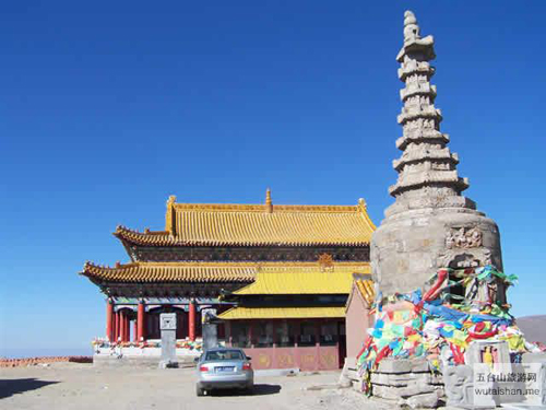 五臺山中臺翠巖峰,又名平頂山,海拔2894米,居?xùn)|、西、南、北四臺的中心,也是四臺的發(fā)脈之祖,臺頂面積也最大?!肚鍥錾街尽吩疲骸皫p巒雄曠,翠靄浮空”。其山勢酷似一頭挺立的雄獅。臺頂寺院名作演教寺,內(nèi)供孺童文殊。