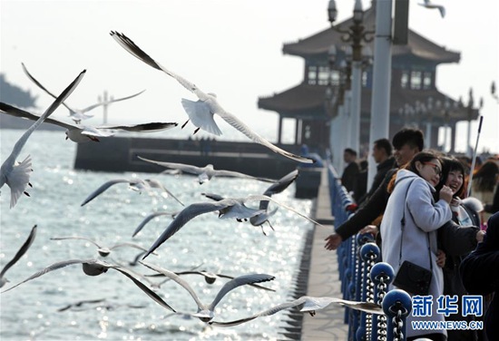 每到冬季,大批海鷗從西伯利亞等地飛臨青島越冬避寒,它們多集中停留在青島沿海一線,吸引眾多市民和游客前來(lái)觀賞和拍攝。新華社記者 李紫恒攝