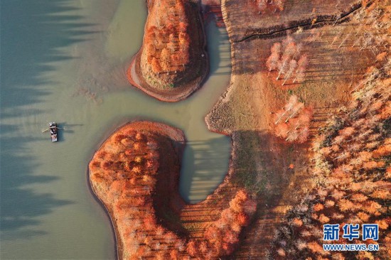 初冬之際,在江蘇盱眙天泉湖畔,連片的紅杉呈現(xiàn)鮮艷的色彩,構(gòu)成獨(dú)特的景觀畫卷。天泉湖在生態(tài)建設(shè)時種植紅杉,目前已成為有名的生態(tài)旅游目的地。