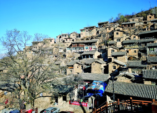 在太行山里一塊凸起的大山石上,村民們建起了鱗次櫛比、不同于當(dāng)?shù)仫L(fēng)格的50余座院落,他們?nèi)粘龆鳌⑷章涠?,歷經(jīng)千年。