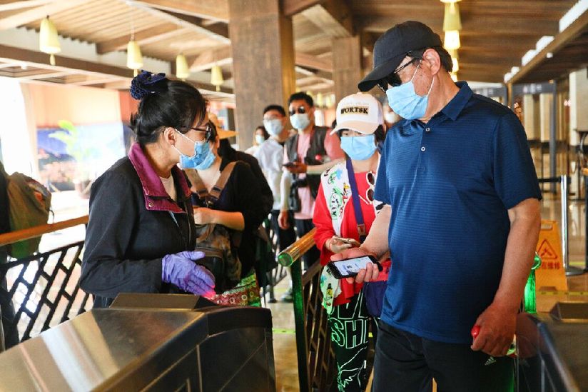 游客嚴格執(zhí)行疫情防控制度進行核驗后進入景區(qū)。