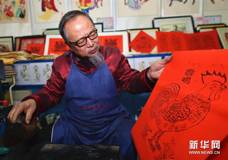 春節(jié)期間,山西省新絳縣的絳州木版年畫傳承人吳百鎖忙得不可開交,來購買“吉祥如意”“雄雞一唱天下白”等主題年畫的顧客絡(luò)繹不絕。山西省非物質(zhì)文化遺產(chǎn)絳州木版年畫發(fā)端于宋金,興盛于明清,從選料到雕刻再到上色都非常講究,一幅年畫的制作需要七八道精細(xì)工序。隨著時(shí)代的變遷,目前已鮮有專職雕刻、印制年畫的匠人。擁有嫻熟雕刻技藝的吳百鎖在傳承傳統(tǒng)工藝的基礎(chǔ)上,積極創(chuàng)作現(xiàn)代題材的作品,希望通過自己的創(chuàng)新讓更多少年兒童了解并愛上木版年畫,讓這門幾乎失傳的技藝綻放新的光彩。新華社記者 曹陽 攝