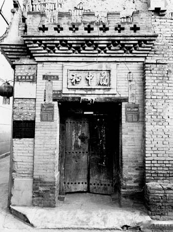 西街棗澗西巷一號(hào)有一處王氏民居,坐南朝北,門匾上書“履中和”,磚雕門匾,竹節(jié)邊框?!奥闹泻汀背鲎詽h焦贛《易林蠱之兌》:“含和履中,國(guó)無災(zāi)殃?!币鉃椋鹤呗纺_不要偏,做事要以和為貴。