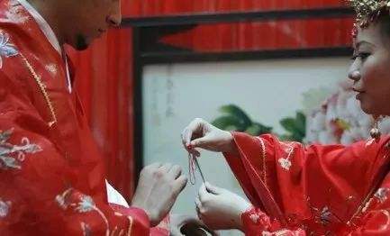婚禮喝交杯酒也要用同心結,亦是結發(fā)同心髻之延伸,《東京夢華錄》:“用兩盞以彩結連之,互飲一盞,謂之交杯酒。飲訖,擲盞并花冠于床下,盞一仰一合,欲云大吉”。即用同心結拴在兩個酒杯上,交臂而飲。酒喝完后,與花冠擲于新床下,如果酒杯一個仰,一個覆,就是大吉的征兆。同心結還用于人們的閨閣裝飾,表達對白頭偕老、永結同心的愛情生活的向往和追求。