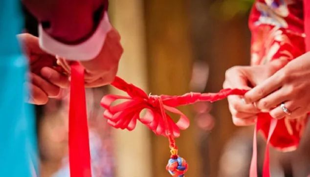 后來,人們就稱首次結婚的男女為“結發(fā)夫妻”。在有些新婚洞房中可看到火紅色的“同心結”,即是古代同心發(fā)結的延伸,“結”字取其堅固、結伴、結合之意。