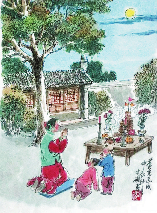 “中秋月。月到中秋偏皎潔。”賞月是中秋節(jié)的重要習(xí)俗,我國(guó)民間的中秋賞月活動(dòng)約始于魏晉時(shí)期,盛于唐朝,當(dāng)時(shí)許多名篇佳作中都有詠月的詩(shī)句。北宋時(shí)期,以賞月活動(dòng)為中心的中秋節(jié)已成為普遍的民俗節(jié)日,然而與唐代不同的是,宋代關(guān)于賞月的作品多是感物傷懷,以陰晴圓缺喻人情世態(tài)。宋代的中秋夜是不眠之夜,夜市通宵營(yíng)業(yè),游人絡(luò)繹不絕,《東京夢(mèng)華錄》中載:“中秋節(jié)前,諸店皆賣新酒,貴家結(jié)飾臺(tái)榭,民家爭(zhēng)占酒樓玩月,笙歌遠(yuǎn)聞千里,嬉戲連坐至?xí)??!币恍┑胤缴踔亮鱾鳌爸星镆乖酵硭介L(zhǎng)壽”的說法,于是有了守夜的習(xí)俗。守夜時(shí),家里長(zhǎng)輩通常會(huì)給小孩講關(guān)于月亮的故事,如嫦娥奔月、吳剛伐桂等,孩子們個(gè)個(gè)聽得津津有味。