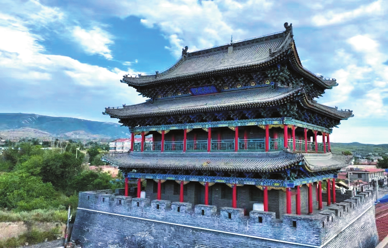 穿越時光隧道,窺視歷史風(fēng)云。建置沿革,由來久矣。春秋戰(zhàn)國,樓煩故地。趙武靈王胡服騎射,雁門郡所屬;秦漢西晉一統(tǒng)寰宇,樓煩縣所領(lǐng)。北魏設(shè)廣寧、神武二郡,隋唐置樓煩、寧武兩軍。宋遼金元,寧化縣、寧化軍賡續(xù);洪武成化,千戶所、寧武關(guān)雙成。滿清設(shè)寧武府、寧武縣,府縣同治;民國則覆帝座、倡共和,府廢縣存。樓煩駿馬甲天下,頭馬營、二馬營、三馬營,騏驥騰驤、鐵馬金戈護桑梓;樓煩自古征戰(zhàn)地,東馬坊、中馬坊、西馬坊,骕骦馳騁、銀槍玉斧衛(wèi)山陵。御山部、匈奴,馬蹄踏踏;融鮮卑、契丹,戰(zhàn)旗獵獵;拒瓦剌、韃靼,鼙鼓震震??谷諔?zhàn)爭,血火淬礪;解放戰(zhàn)爭,狂飆突進。新中國東方崛起,寧武縣風(fēng)騷獨領(lǐng)。