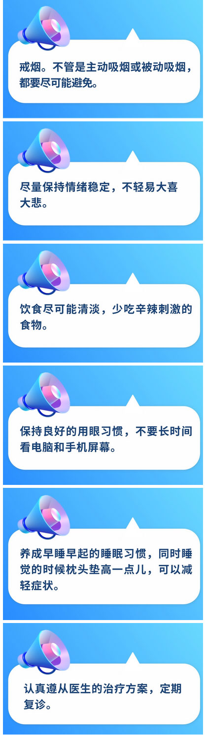 如果患者是剛開始發(fā)病,眼部癥狀還不明顯,經(jīng)醫(yī)生評(píng)估后,通常定期隨訪就可以了;如果突然出現(xiàn)病情進(jìn)展,就需要立即復(fù)診。同時(shí)在這個(gè)過程中,保持甲狀腺功能穩(wěn)定,并按照上述提到的生活建議去養(yǎng)成習(xí)慣,可以在一定程度上延緩病情的發(fā)展。