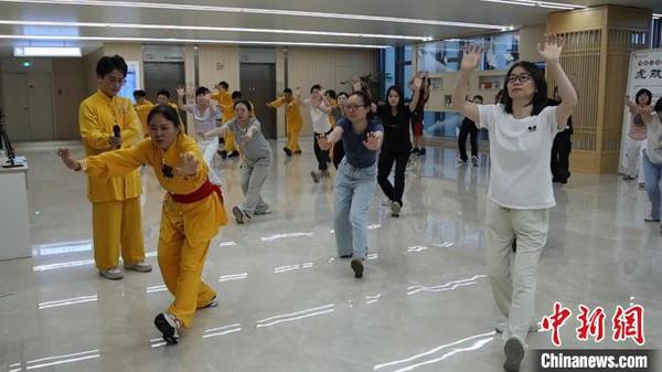 在現(xiàn)場(chǎng),首期授課老師、浙江省立同德醫(yī)中醫(yī)內(nèi)科主任周天梅化身“私教”,一個(gè)個(gè)動(dòng)作分步分解教學(xué),“‘虎戲’主要?jiǎng)幼鞯囊I(lǐng)是虎撲和虎舉,通過腰部的運(yùn)動(dòng),強(qiáng)壯腰腎功能,通過長(zhǎng)期的運(yùn)動(dòng),可緩解長(zhǎng)期工作導(dǎo)致的頸椎不適等癥狀,調(diào)節(jié)身心。”
