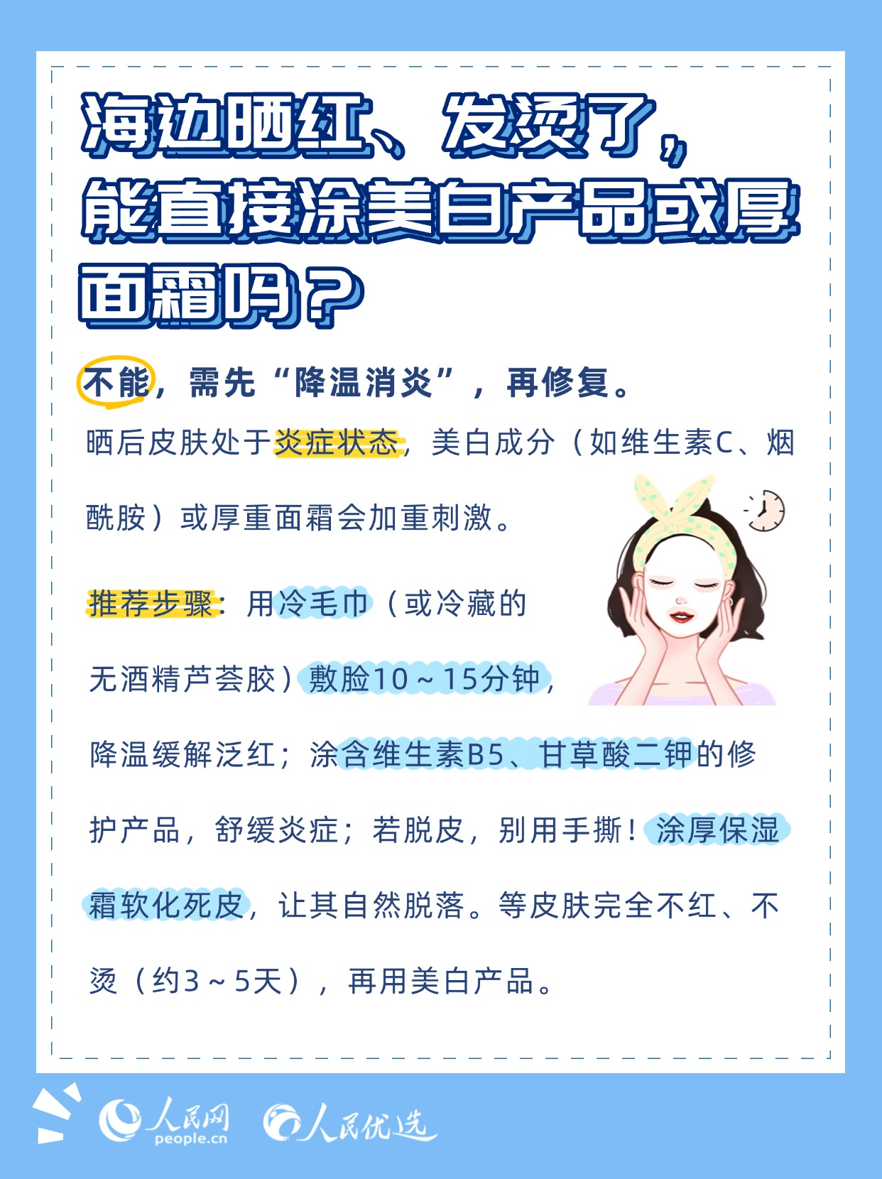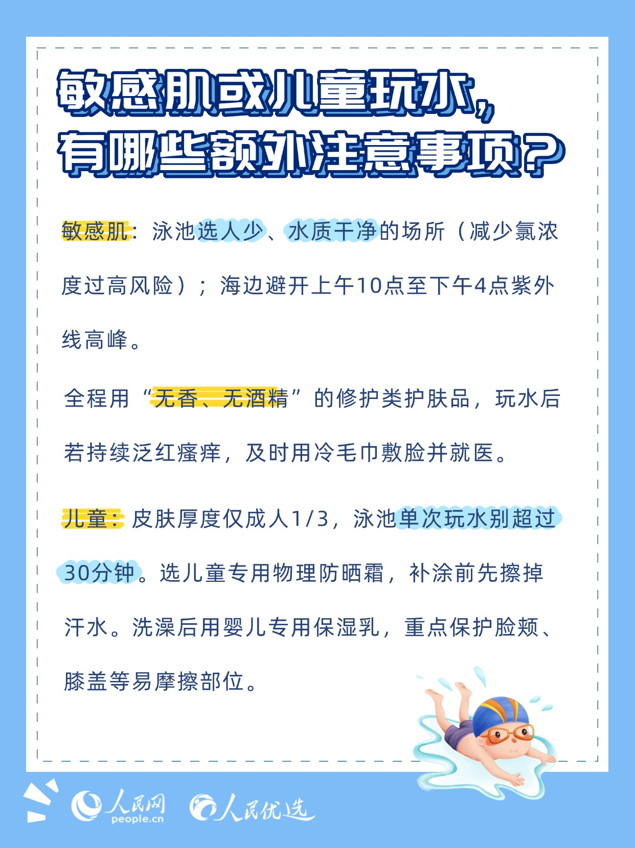 夏日炎炎,無(wú)論是泳池里的清涼暢游,還是海邊的逐浪嬉戲,都是驅(qū)散暑氣的不錯(cuò)選擇。但玩水的快樂(lè)背后,卻藏著不少傷害皮膚的“陷阱”——泳池的消毒劑、海邊的強(qiáng)紫外線、海水中的高鹽分,稍有不慎就可能引發(fā)皮膚干燥、泛紅、曬黑、長(zhǎng)斑甚至?xí)駛?。本期《人民?yōu)選來(lái)了》教你掌握科學(xué)的護(hù)膚方法,讓你在享受玩水樂(lè)趣的同時(shí),保持健康的肌膚狀態(tài)。