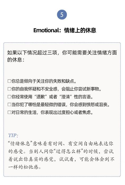 有內(nèi)科醫(yī)生根據(jù)研究和臨床經(jīng)驗(yàn),提出了7種類型的休息方式,幫助我們確定最需要哪一種。
