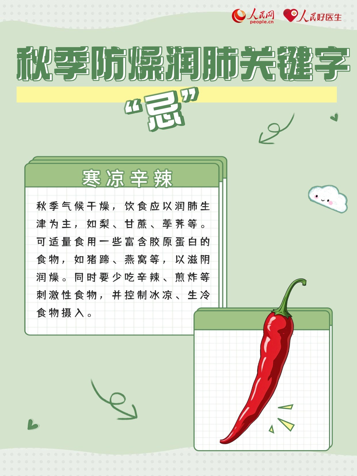 俗話說:“春生夏長,秋收冬藏?!鼻锾焓鞘斋@的季節(jié),天氣由熱轉涼,人體也進入一個調整和適應的階段。空氣中的水分減少,容易讓人感覺口干、皮膚干。從中醫(yī)角度看,秋季五行屬金,在氣候上與“燥”對應,在五臟上與“肺”對應,人體最易感受的就是秋燥。此時,秋季養(yǎng)生以防秋燥、潤肺為重點,為即將到來的冬天打好基礎。因此,牢記秋季養(yǎng)肺的“三忌三食”,尤為重要。