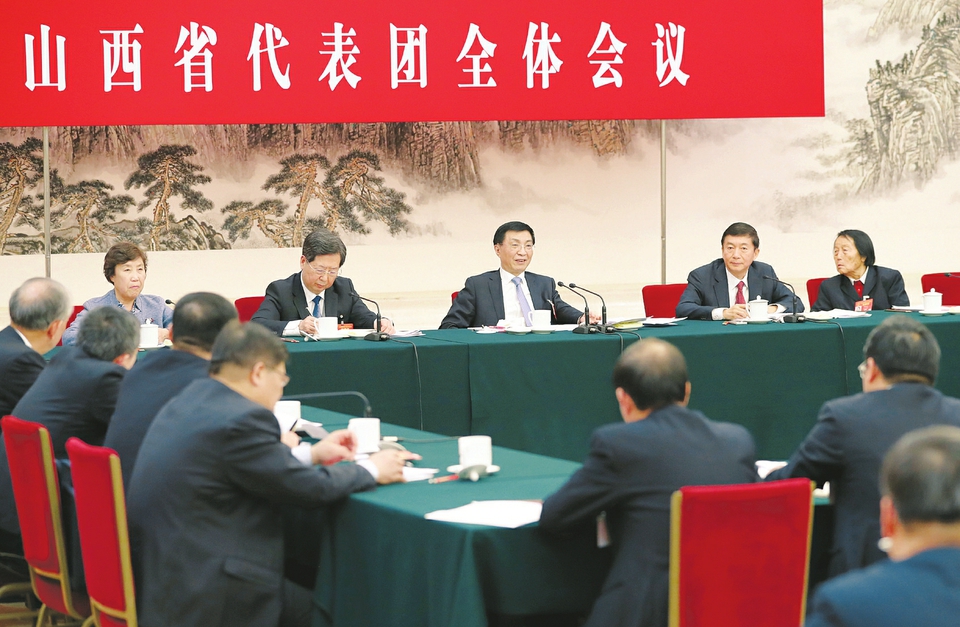 本報(bào)北京電(記者尚慧輝 楊文)3月12日下午,十三屆全國(guó)人大二次會(huì)議山西代表團(tuán)舉行全體會(huì)議。中共中央政治局常委、中央書(shū)記處書(shū)記王滬寧與代表們一同審議。