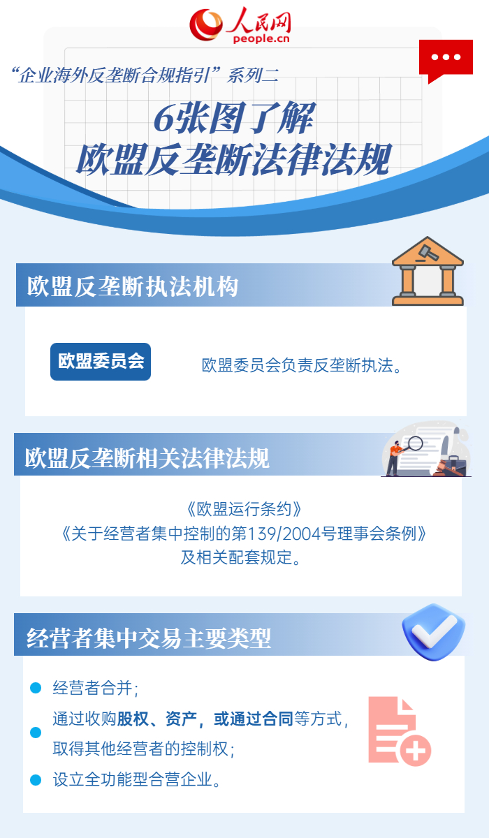 近年來,我國(guó)企業(yè)國(guó)際化進(jìn)程加速,越來越多企業(yè)“走出去”參與國(guó)際競(jìng)爭(zhēng)。針對(duì)企業(yè)比較關(guān)心的海外反壟斷合規(guī)問題,人民網(wǎng)聯(lián)合市場(chǎng)監(jiān)管總局反壟斷二司特推出“企業(yè)海外反壟斷合規(guī)指引”系列圖解,按國(guó)別市場(chǎng)分類帶您了解境外反壟斷法律制度,為廣大企業(yè)經(jīng)營(yíng)者提供參考。