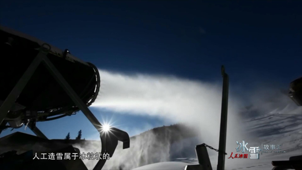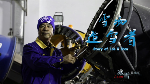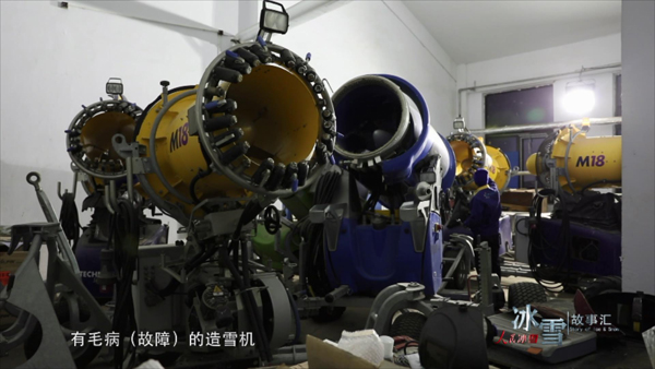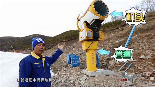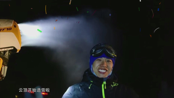(我們)在零下三十多度的情況下,也要堅持造雪,造雪機出現(xiàn)困難(故障)的時候,我們也得去及時搶修,不戴手套,都要堅持把它(造雪機)修好。