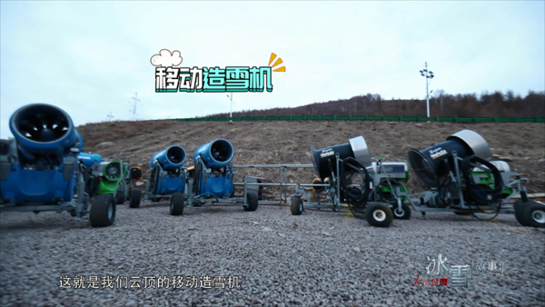 這就是我們云頂?shù)囊苿釉煅C,一共有四十五臺。每年造雪結(jié)束之后,就把它入庫,進行每年的定期檢修。