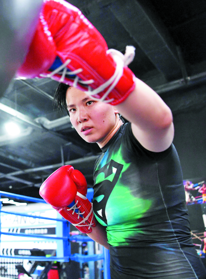 在薛金玉的帶動(dòng)下,搏擊成為她所在健身房最受歡迎的運(yùn)動(dòng)之一,越來越多的“硬核”年輕人走上拳臺(tái),享受搏擊運(yùn)動(dòng)帶來的快樂?!懊刻鞆闹形绲酵砩险n程安排得非常滿,人多的時(shí)候拳臺(tái)都站不下。”薛金玉笑著說。