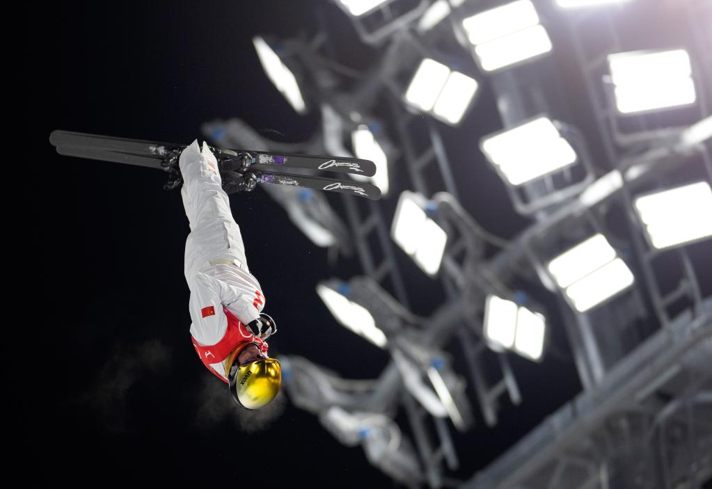 2月15日,中國(guó)選手齊廣璞在北京冬奧會(huì)自由式滑雪男子空中技巧資格賽中。新華社記者費(fèi)茂華攝