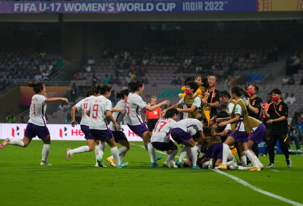 新華社孟買10月12日電 在12日進(jìn)行的2022年U17女足世界杯C組首輪比賽中,中國隊以2:1戰(zhàn)勝墨西哥隊,取得“開門紅”。