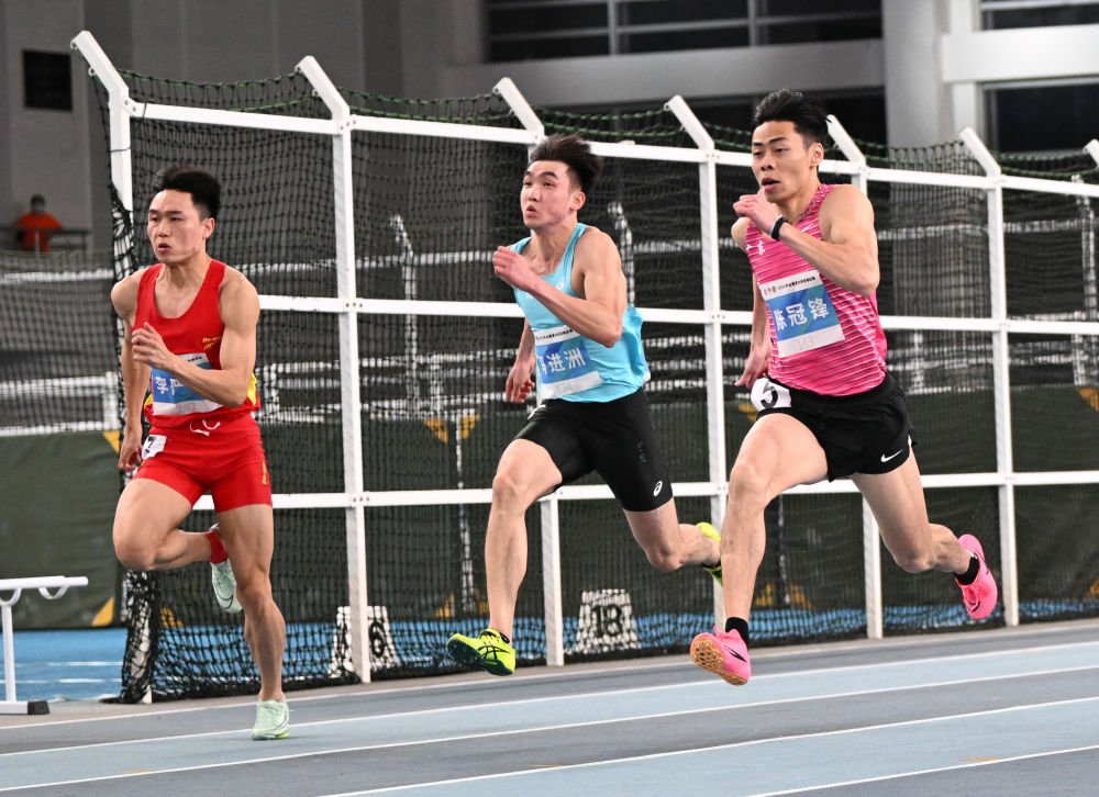 陳冠鋒和湯星強(qiáng)是男子4X100米接力項目國家隊隊友,此番在室內(nèi)60米決賽同場較量,廣東隊陳冠鋒起跑出色、沖刺有力,最終率先沖過終點(diǎn),以6秒55的個人最好成績奪冠。福建隊湯星強(qiáng)狀態(tài)欠佳,成績?yōu)?秒70,名列第五。