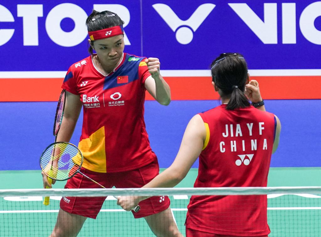 9月10日,中國組合陳清晨/賈一凡(右)在比賽中。新華社記者 楊磊 攝