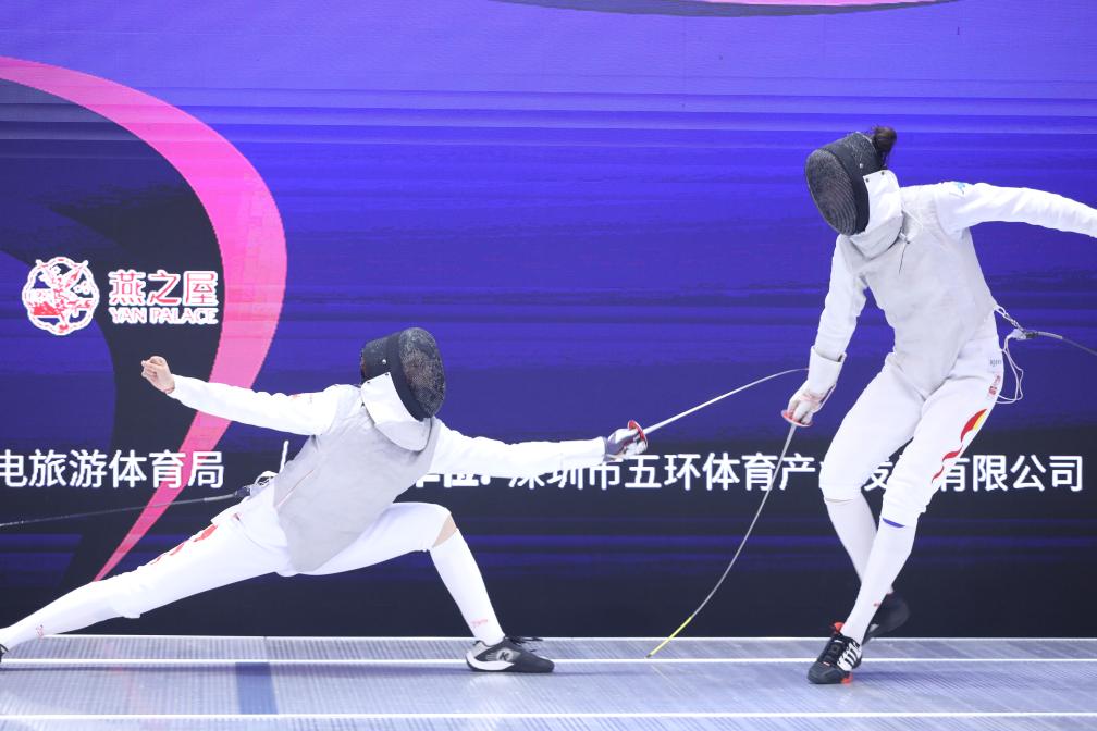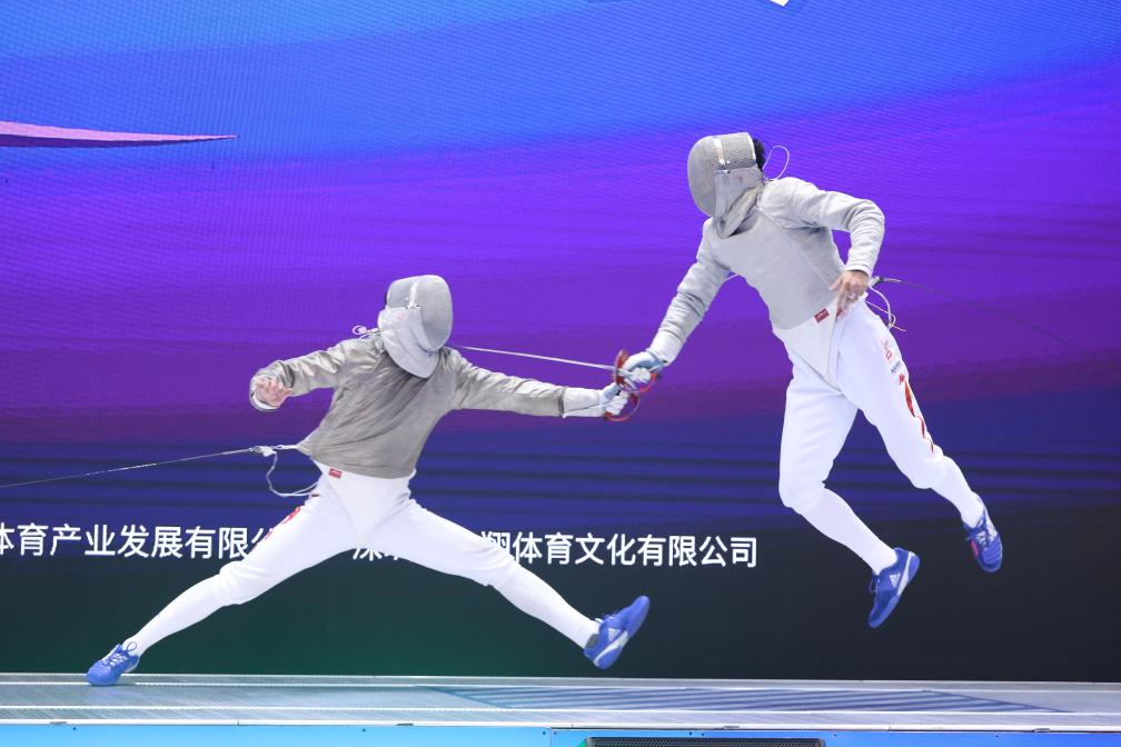 代銳(左)在男子佩劍個(gè)人決賽中對(duì)陣林霄