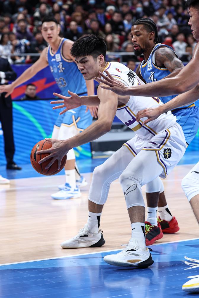 11月15日,北控隊球員陳國豪(前左)在對陣北京隊的比賽中。新華社記者 吳壯 攝