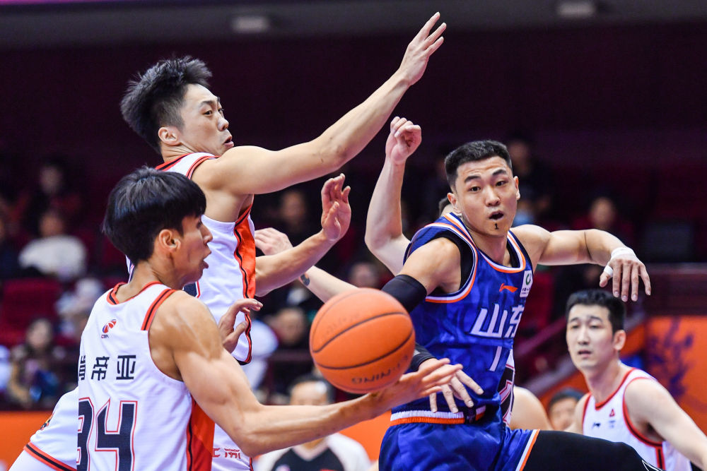 山東隊(duì)與江蘇隊(duì)都需要一場(chǎng)勝利來(lái)走出連敗陰影。比賽伊始,兩隊(duì)失誤連連、效率不高,山東隊(duì)稍稍領(lǐng)先。次節(jié)比賽,山東隊(duì)主動(dòng)提升防守強(qiáng)度、進(jìn)行全場(chǎng)緊逼,江蘇隊(duì)對(duì)此缺乏應(yīng)對(duì)、顯得很不適應(yīng)。客隊(duì)屢將比分追至一球之差,卻難以抹平分差。半場(chǎng)哨響,山東隊(duì)55:51領(lǐng)先江蘇隊(duì)。