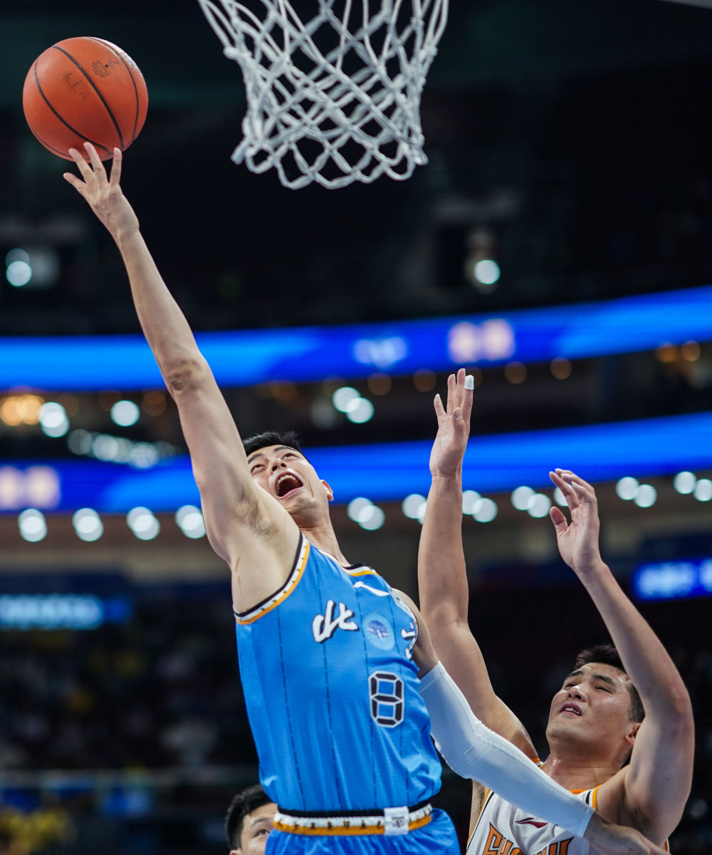 12月7日,北京隊(duì)球員方碩(左)在比賽中上籃。新華社記者 彭子洋 攝