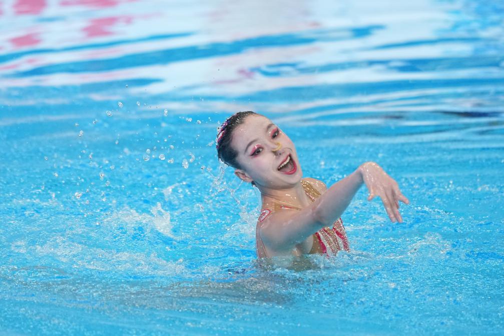 花游女單技術(shù)自選決賽中,參加過三屆奧運(yùn)會的希臘老將普拉塔尼奧蒂以272.9633分奪冠,加拿大選手西莫努摘銀。首次參加世錦賽的中國小將徐匯妍以主題為《夜游長安城》的一套動作獲得銅牌。徐匯妍在預(yù)賽中名列第四,決賽中將動作難度從36.0分提高到38.2分,總分從258.2067提高到262.3700。
