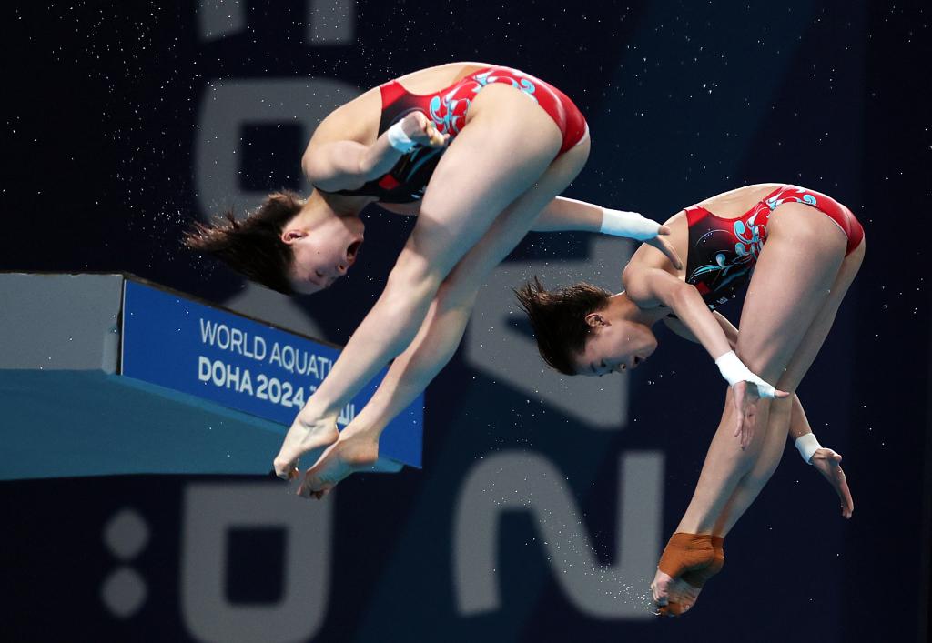 新華社多哈2月6日電(記者劉旸、周欣、孫哲)多哈游泳世錦賽6日進(jìn)行跳水女雙10米臺(tái)決賽,中國(guó)“雙子星”組合陳芋汐/全紅嬋發(fā)揮穩(wěn)定,毫無懸念地摘得金牌,實(shí)現(xiàn)世錦賽該項(xiàng)目“三連冠”。