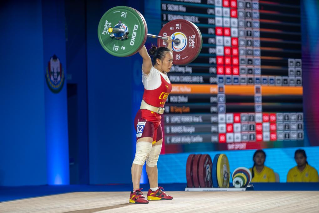 新華社泰國普吉4月1日電(記者林昊、王騰)4月1日在泰國普吉島舉行的2024年舉重世界杯上,中國隊(duì)選手侯志慧在女子49公斤級(jí)比賽中獲得抓舉金牌,并打破世界紀(jì)錄。