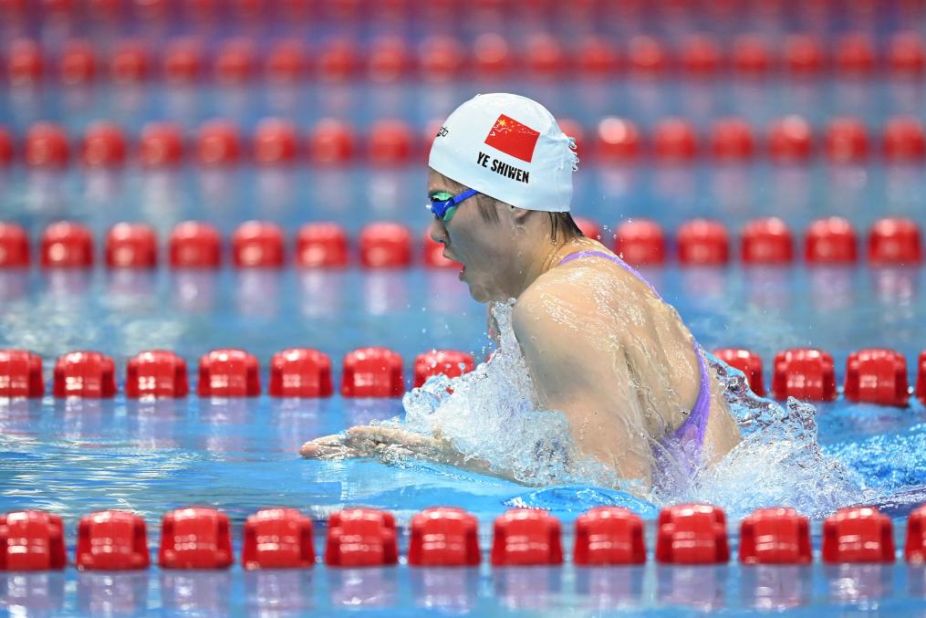 女子200米蛙泳決賽中,葉詩(shī)文在接近100米時(shí)超越身旁的唐錢(qián)婷排名第一,并把優(yōu)勢(shì)保持到最后,以2分22秒55奪冠,成績(jī)超過(guò)了奧運(yùn)A標(biāo)。唐錢(qián)婷、朱蕾桔分獲二、三名。