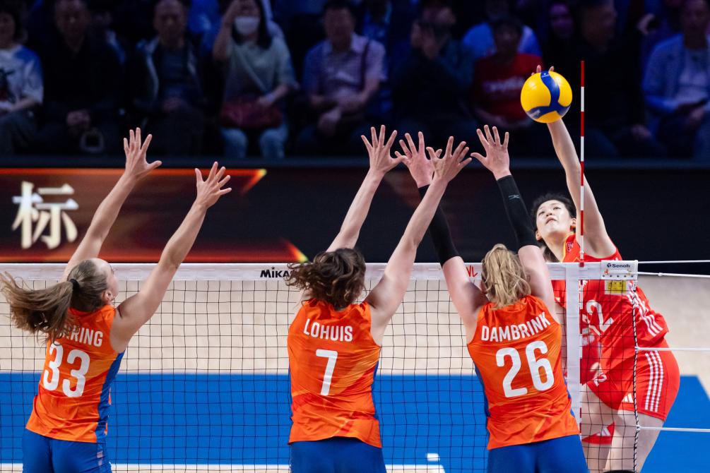首局比賽中國隊失誤較多,荷蘭隊取得13:6的領(lǐng)先。中國隊請求暫停后迅速調(diào)整狀態(tài),一度將分差縮小至3分,但最終還是以21:25告負。第二局,中國隊在開局落后的情況下依靠多點進攻在后半段反超比分,以25:23扳平大比分。士氣大振的中國女排在接下來的比賽中掌握了主動,進攻更加積極,以25:23、25:21連下兩局贏得勝利。