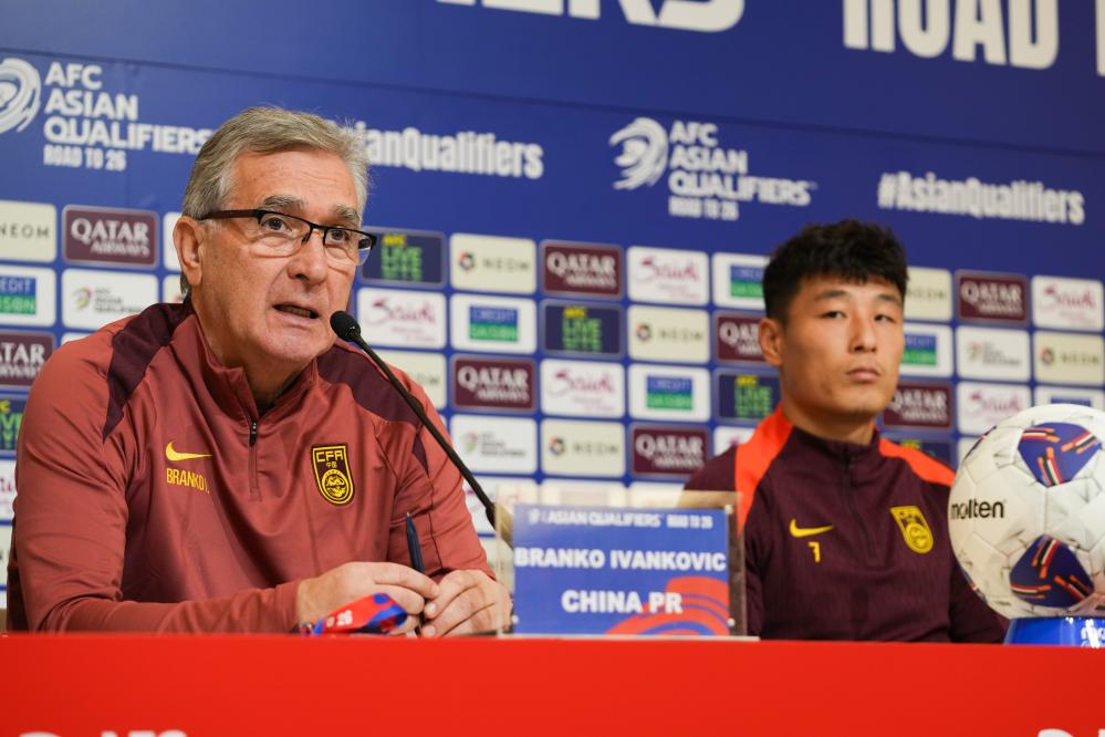 9月4日,中國隊(duì)主教練伊萬科維奇(左)在發(fā)布會上。新華社記者 張笑宇 攝