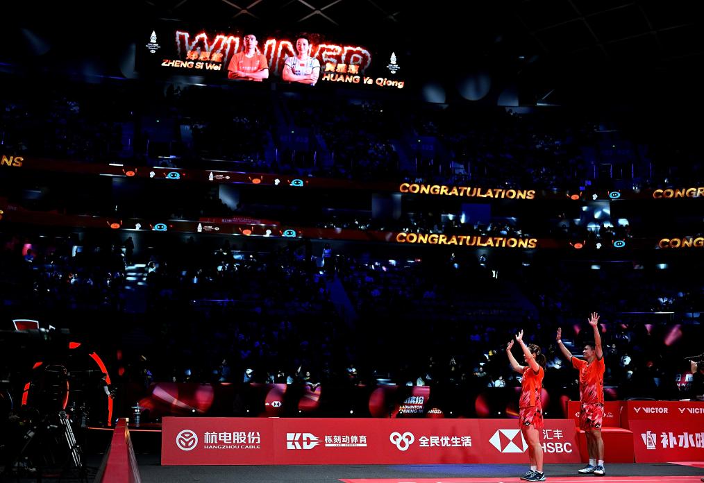 12月15日,鄭思維(右)/黃雅瓊在獲勝后向觀眾致意。新華社記者 侯昭康 攝