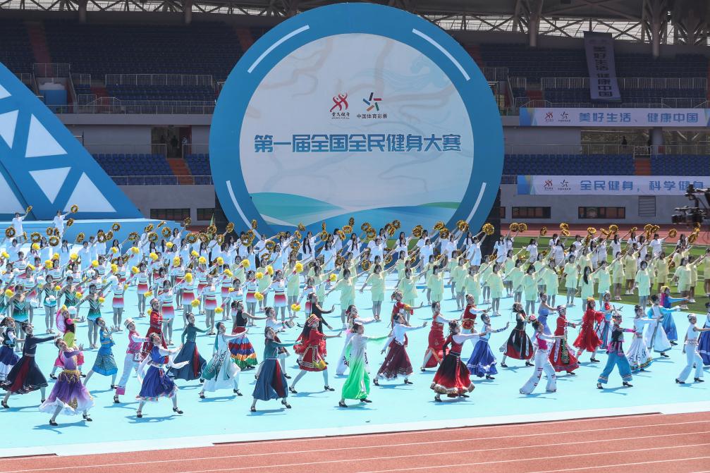 5月20日,演員在第一屆全國全民健身大賽開幕式現(xiàn)場進行表演。新華社記者 潘昱龍 攝
